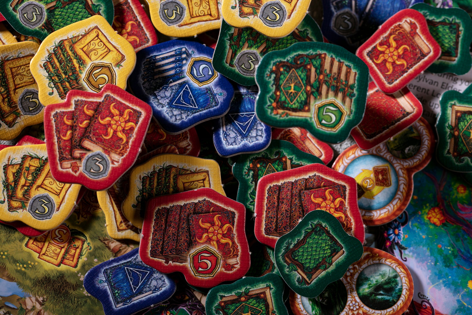 📚 Manage Books of Wisdom — Use four tiers of books (Prairie, Mountain, Forest, Sun) as both resources and victory points. Convert them wisely to power up Allies, add locations, and fuel your engine.
