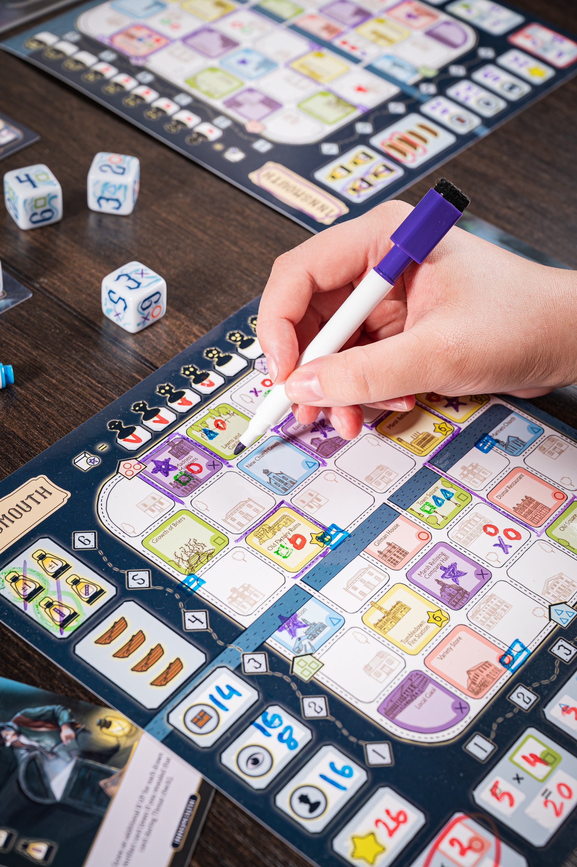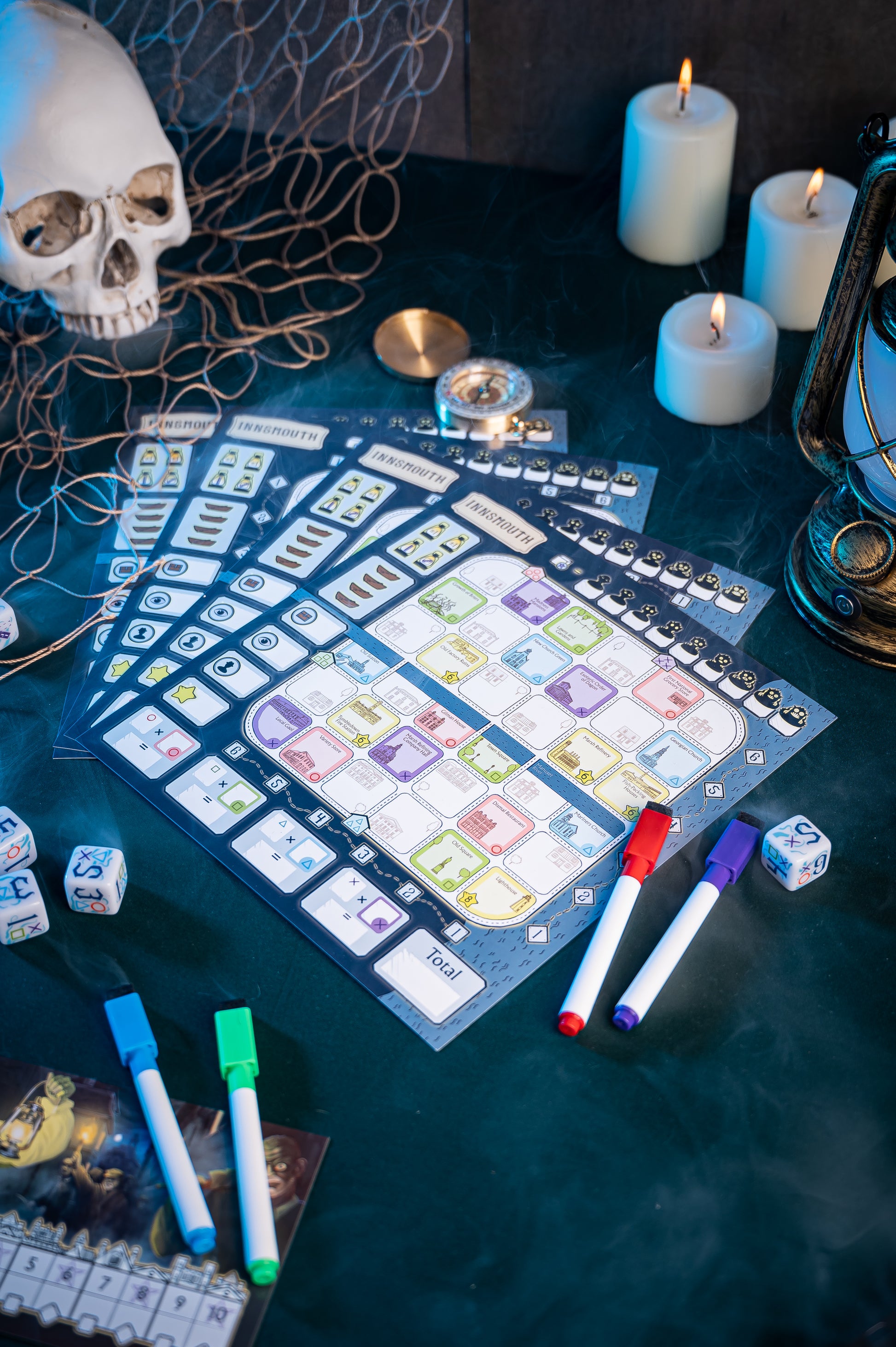 In this standalone follow-up to Arkham Travel Guide, youโll chart haunted routes through a town teetering on the edge of madness. Roll chunky 20mm custom dice. Draw paths. Avoid cultists and Deep Ones. Tempt fate to score big โ or lose your tourists to the shadows.